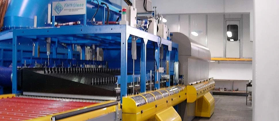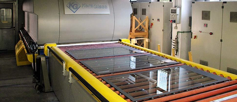 L'azienda è dotata inoltre di un forno di tempera in piano Keraglass per spessori da 4 a 19 mm specifico per omologazioni nei settori ferroviario, trasporti e settori diversificati.